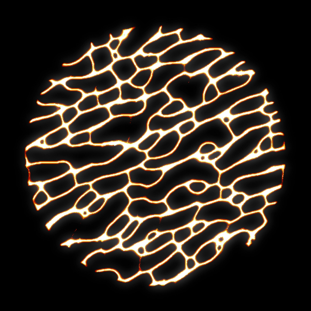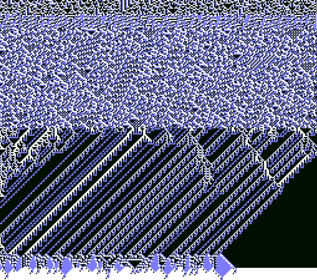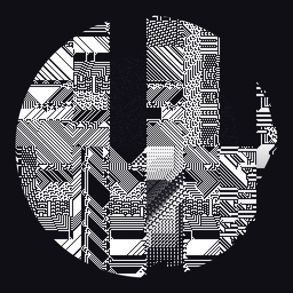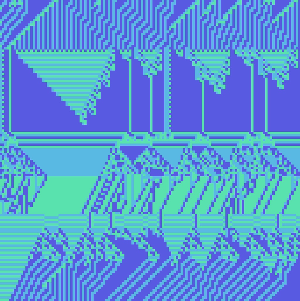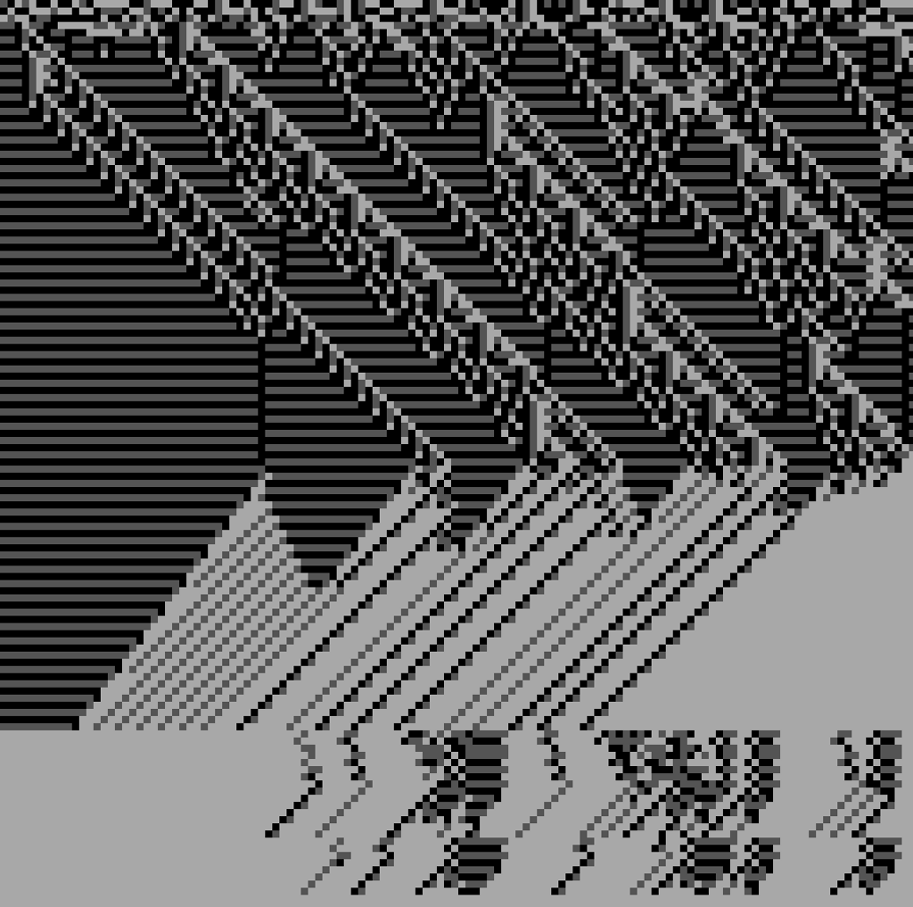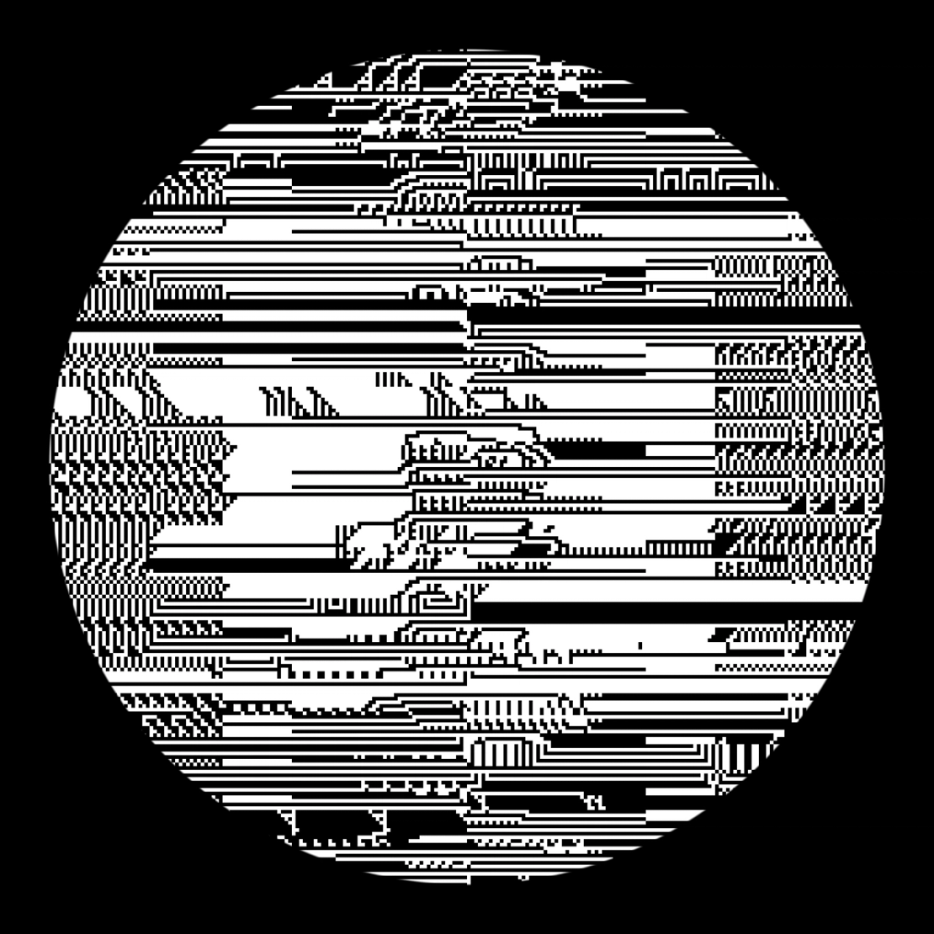 I wanted to explore alternative forms to the classical top-to-bottom/bottow-to-top scanline growing behaviour in cellular automatons. These experiments use a grid of fields, where each field is initialized with different rules, growing directions and settings. The system combines two different variations: classical elementary cellular automata rules and a copy-pixel/plasma rule, which takes pixels from the neighborhood with a noise-controled offset like a stamp.