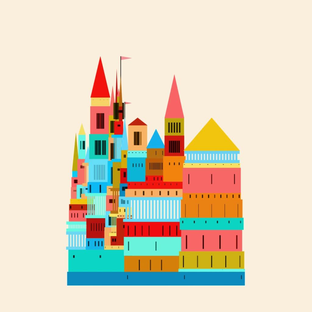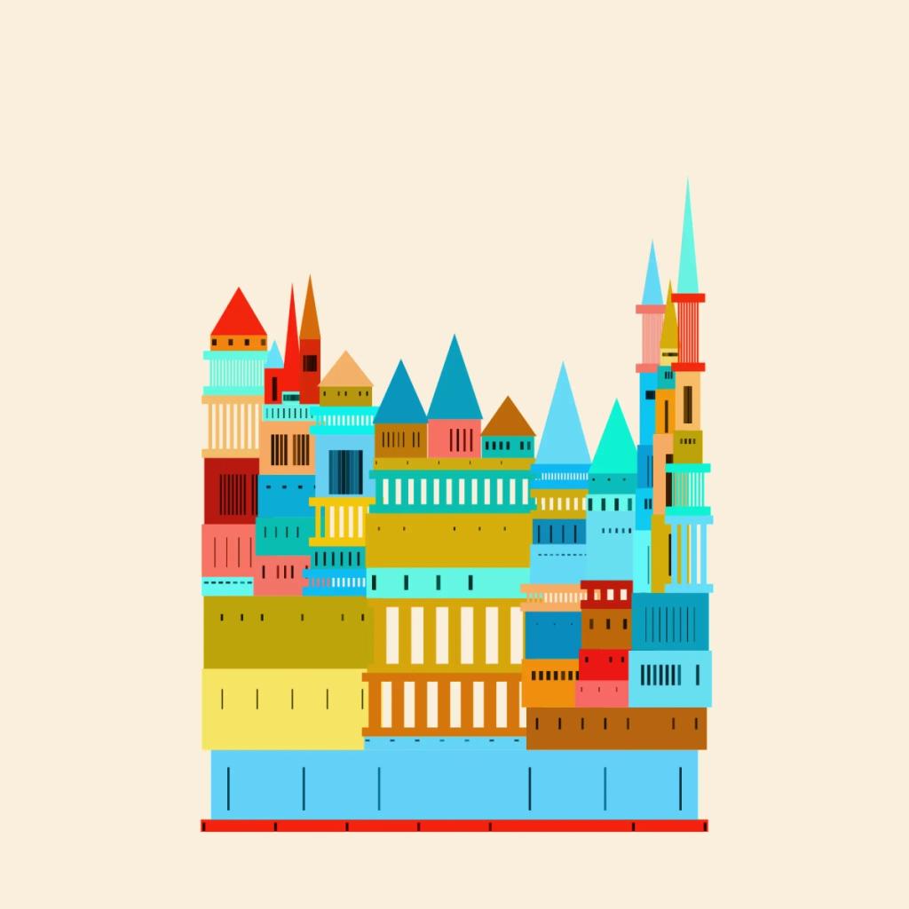 Series of generative illustrations inspired by the beautiful fortified city of Carcassonne in the South of France and Paul Maars book Türme